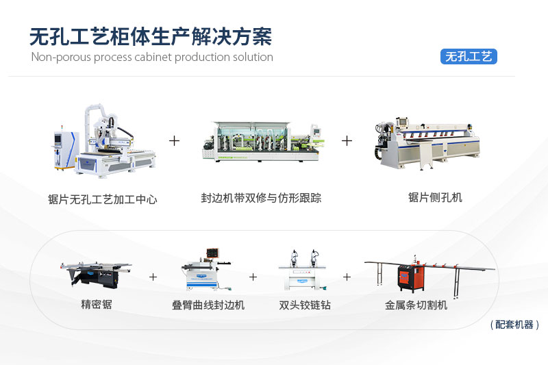?無孔工藝柜體生產(chǎn)解決方案無孔工藝柜體生產(chǎn)解決方案,主要由無孔工藝加工中心、鋸片側(cè)孔機、全自動封邊機三種設備組成,可用于加工生產(chǎn)板式家具、櫥柜、衣柜、兒童家具等柜體的生產(chǎn)加工,滿足家具生產(chǎn)廠家對無孔家具(使用隱形連接件連接)、板式家具(使用二合一、三合一連接件)及普通板式家具的加工需求。
